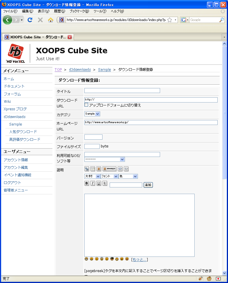 ちょっとしたファイルのダウンロードサービスを行いたいのなら、xpWikiの「添付」機能を使うのが簡単である。しかし、あまり大きなファイルだとバックアップにも手間がかかる。そのような場合は、専用のモジュールを使った方が楽だろう。d3downloadsはファイルのダウンロード(とアップロード)をサポートしてくれる。